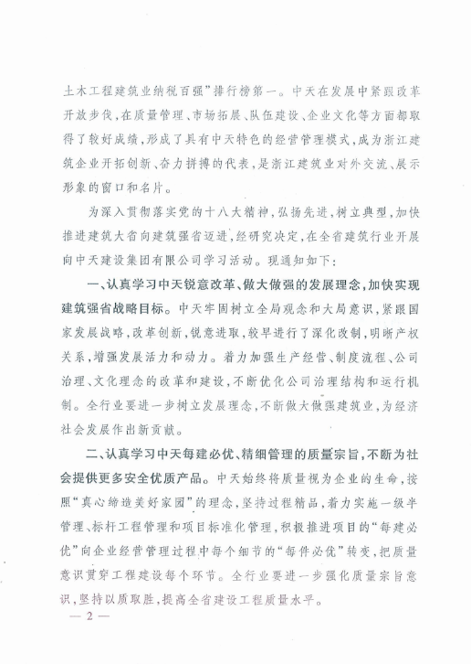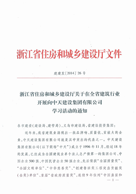 《浙江省住房和城乡建设厅关于在全省建筑行业开展向DB真人建设集团有限公司学习活动的通知》